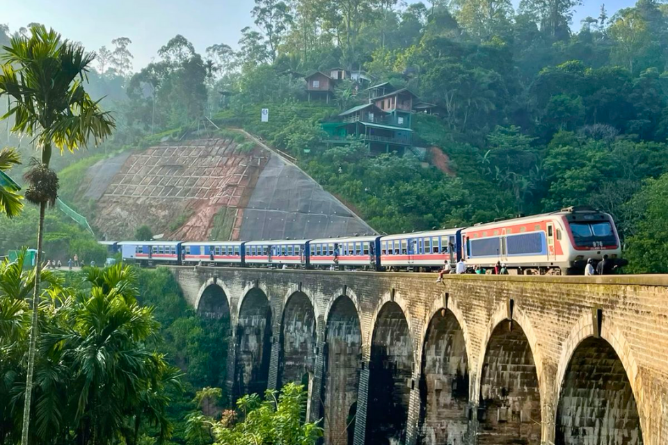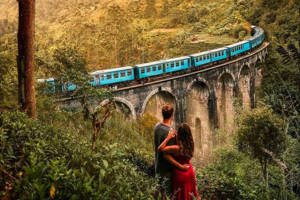 Begin your adventure at the stunning Ravana Falls, feeling the cool mist on your face and capturing memorable photos. Continue with a scenic train ride through lush tea plantations and rolling hills, offering one of the most iconic experiences in Sri Lanka.